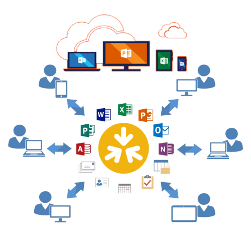 Werk op kantoor, ga onderweg verder waar u bent gebleven en zet thuis de puntjes op de i. U kunt overal aan de slag, eenvoudig en veilig. Op elk apparaat heeft u direct toegang tot uw centraal opgeslagen informatie. En kunt u snel informatie delen en afstemmen.